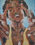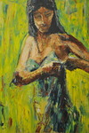 2002Oil painting with palet knife of a woman welcoming you with reaching out arms, October 2002.